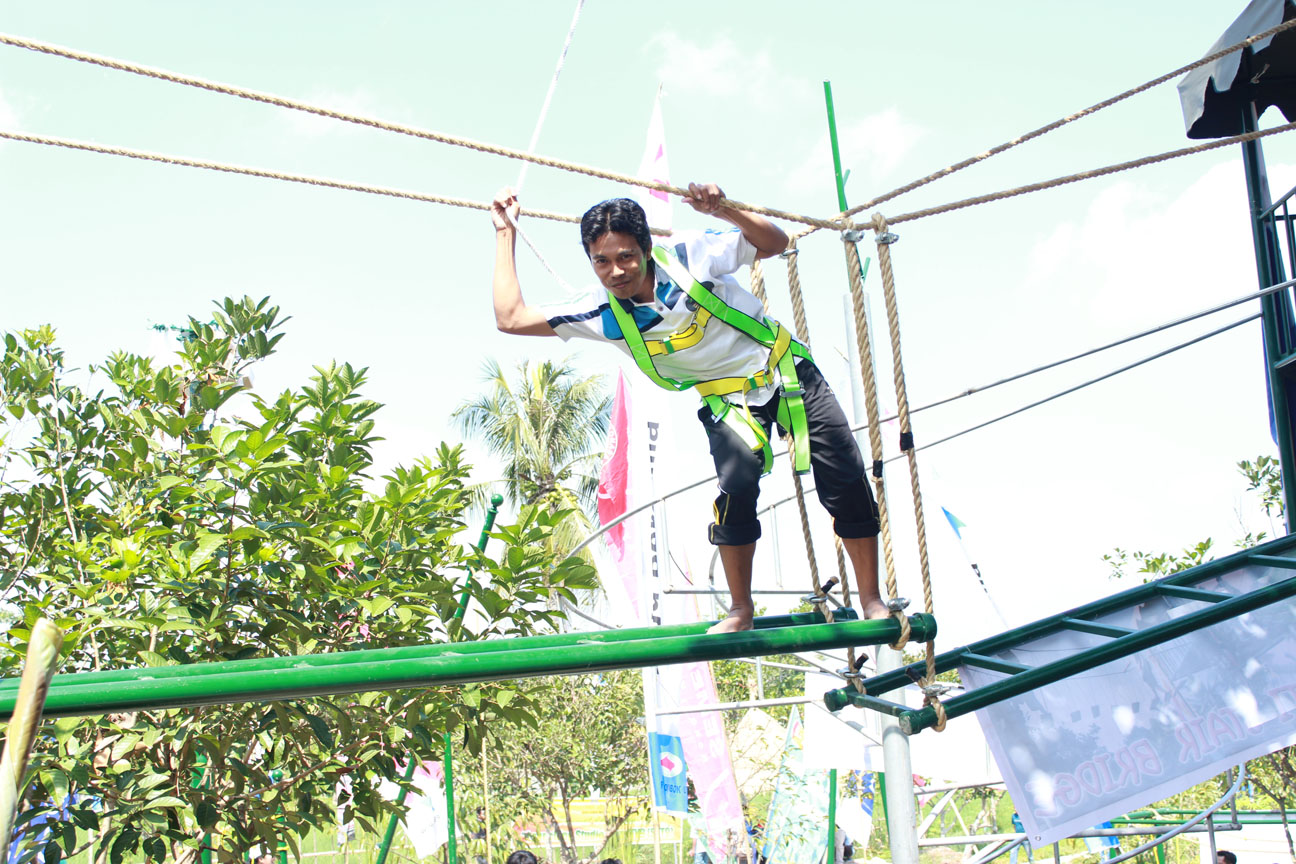 Berjalan diatas tangga yang tergantung di ketinggian yang mengerikan!! Atau Anda ingin melewatinya dengan cara bergelantungan?? Hanya yang bernyali baja yang sanggup menaklukkannya!!